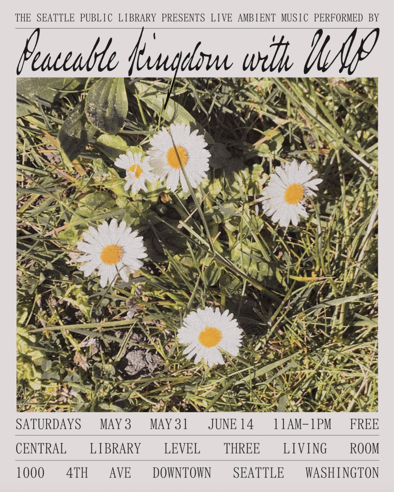 LIVE 5/3/2025 Seattle Central Library FREE 5/22/2025 Seattle Black Lodge w Freak Heat Waves and Jack J 5/31/2025 Seattle Central Library FREE 6/14/2025 Seattle Central Library FREE